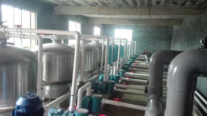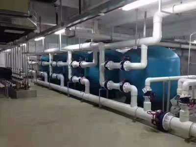 游泳池循環(huán)水凈化處理設(shè)備機(jī)房,一般由均衡水池(或平衡水池)、循環(huán)水泵、過(guò)濾器、加藥設(shè)施、換熱器、消毒設(shè)備、化學(xué)藥品和助凝劑、特殊設(shè)施、系統(tǒng)運(yùn)行操作控制設(shè)備等內(nèi)容組成。