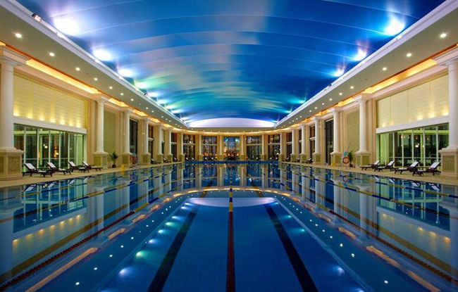 確保水質(zhì)達(dá)標(biāo)。因?yàn)榇蠖鄶?shù)游泳池是露天的,每天有大量的泳客下水游泳,人的皮膚會(huì)給水中帶來(lái)許多的細(xì)菌和病毒,游泳池開(kāi)放時(shí)間多半在夏季,加之空氣中的塵埃也容易落入游泳池中,因此游泳池的水必須進(jìn)行凈化處理,才能保證泳客的身體健康。游泳池要定期進(jìn)行游泳池循環(huán)過(guò)濾→游泳池消毒→游泳池吸污→游泳池澄清→混凝等程序的游泳池水凈化處理,避免各種意外事故的發(fā)生。同時(shí),通過(guò)游泳池的水凈化處理也能進(jìn)行水的循環(huán)利用,節(jié)約資源,保護(hù)環(huán)境。