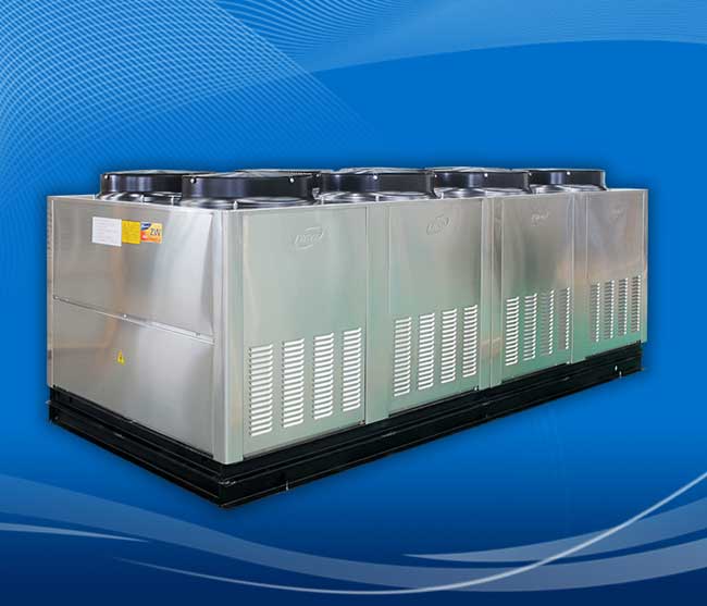 第二步,冷媒吸收的熱能,首先經(jīng)熱交換器加熱池水,實現(xiàn)池水加熱功能;余熱經(jīng)熱管熱交換器上部及空氣冷凝器,加熱冷卻的空氣,實現(xiàn)空氣保溫功能。