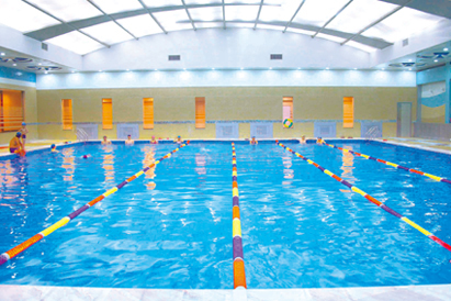 鄭州光華大酒店標準室內(nèi)恒溫游泳池,恒溫水處理全套泳池設(shè)備、溫泉水療池安裝建造。